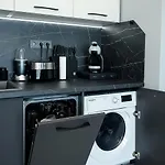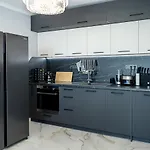 - ❓Une cuisine est-elle disponible à l'appartement spacieux pour les clients ?Oui, l'appartement spacieux est équipé d'une cuisine complète et propose également une bouilloire électrique, un réfrigérateur et un four.